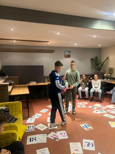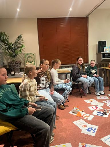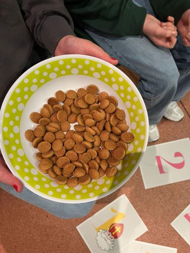 We zijn begonnen met levend ganzenbord in Sinterklaas thema. De winnaars waren Thijn, Yarnick en Yordi. Zij wonnen een heerlijke chocolade letter. Daarna hebben we nog wat spellen gespeeld, waaronder stoelendans, met natuurlijk Sinterklaas liedjes! Tijdens alle spellen moet er natuurlijk ook wat lekkers gegeten worden, dus de pepernoten met ranja stonden voor ons klaar.