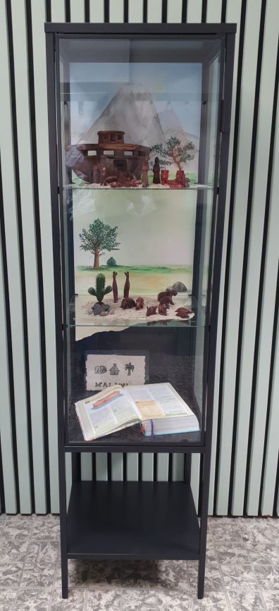 Op dit moment wordt de laatste hand gelegd aan de 'finishing touch' van de Kompashal. Het middelste deel van het drieluik heeft inmiddels een plek gekregen in de hal en bij de lattenwand staat een vitrinekast met daarin een prachtige voorstelling van de Ark van Noach in houtsnijwerk. Het past helemaal bij de beide schilderijen die er hangen!