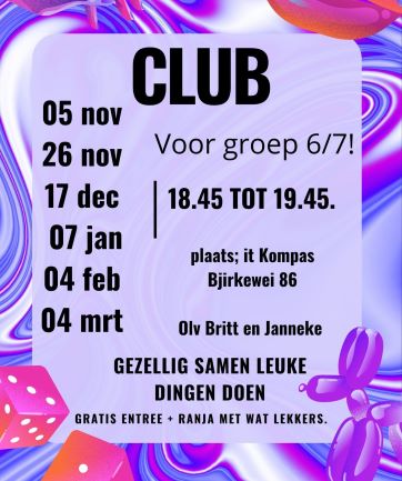 Club voor groep 8 en 1VO (=Voortgezet Onderwijs)