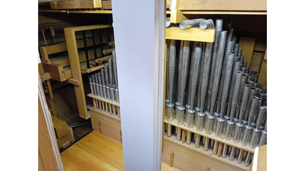 Jullie zullen zien dat er heel wat pijpen zijn, hele grote maar ook hele kleine. Eens in de zoveel tijd komt de orgelstemmer om de diverse tonen weer goed te doen klinken waarbij toets voor toets, pijp voor pijp wordt beoordeeld en zonodig bijgesteld qua toon. Een intensief karweitje dat met 2 man gedaan moet worden en een hele dag in beslag neemt.